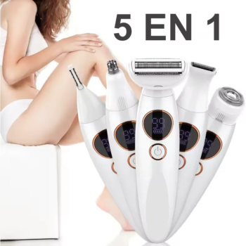 Epilateur électrique 5 en 1 pour femme tondeuse pour visage, jambes, bras, corps et bikini rechargeable étanche IP7