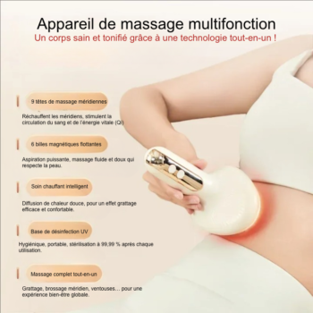 Offrez à votre corps un soin complet digne d’un institut avec cet appareil 2-en-1 révolutionnaire. Spécialement conçu pour réduire la cellulite, brûler les graisses et relancer l’énergie vitale, il combine ventouse intelligente, massage des méridiens et diffusion automatique d’huiles essentielles.
