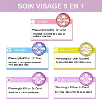 4. Luminothérapie : Émet différentes longueurs d’onde de lumière (rouge, bleue, verte, etc.) pour cibler divers problèmes de peau, comme l’acné, les taches brunes et le teint terne.