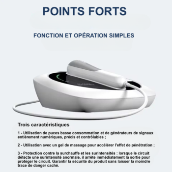 - Combine les effets des ultrasons, de la chaleur et de l’acupuncture pour un traitement 3 en 1