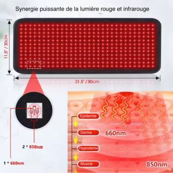 🌟 Ceinture de thérapie lumière rouge & infrarouge – 660 nm & 850 nm (30×80 cm)