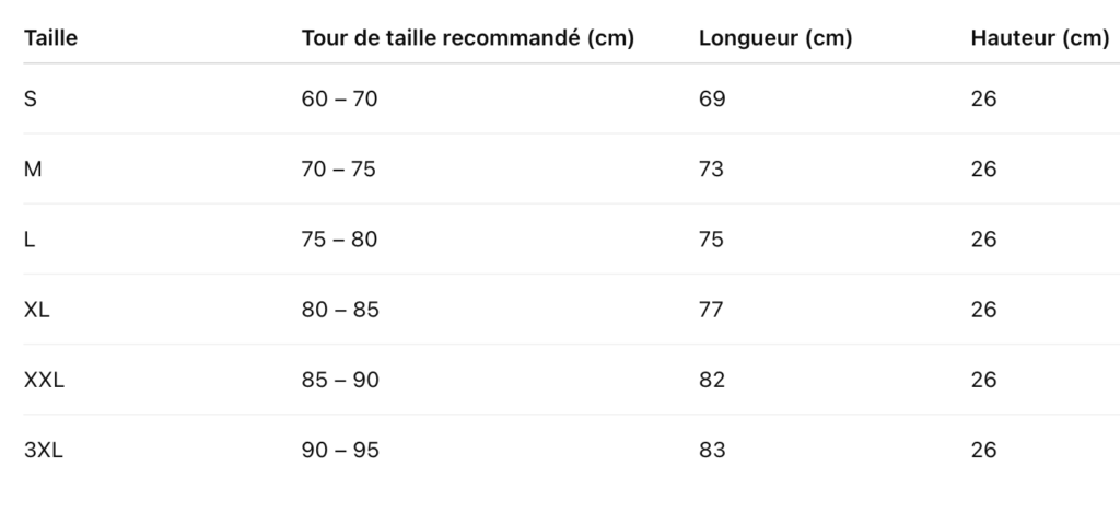 - Confortable et discret : Matériaux doux et respirants adaptés à un usage quotidien ou pendant l’exercice.